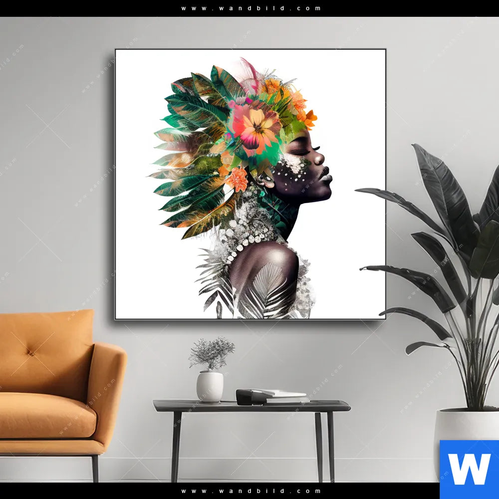 Wechselmotiv Textil | Doppelbelichtung Porträt einer afrikanischen Frau | Quadrat