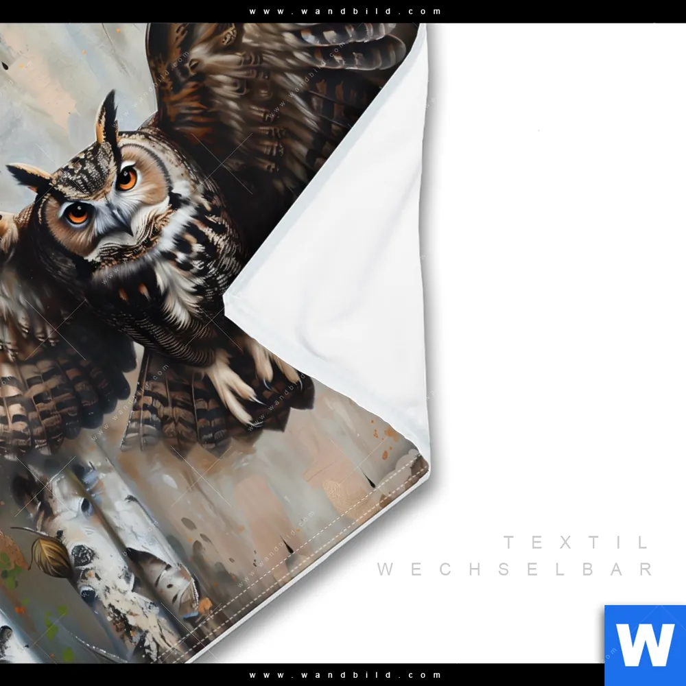 Wechselmotiv Textil | Eule im Birkenwald | Quadrat