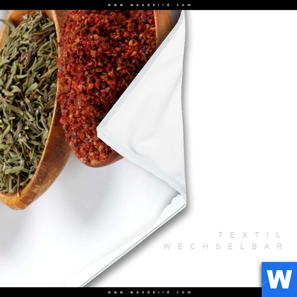 Wechselmotiv Textil | Farbige Gewürze auf Holzlöffel | Querformat