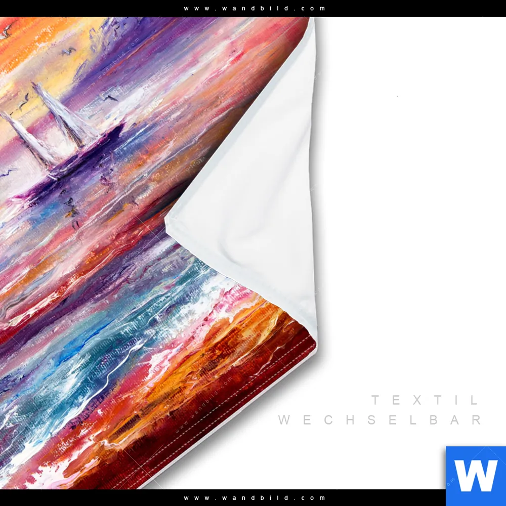 Wechselmotiv Textil | Gemälde mit Boot im Sonnenuntergang | Quadrat