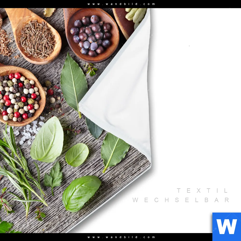 Wechselmotiv Textil | Gewürze auf Holzlöffeln | Quadrat