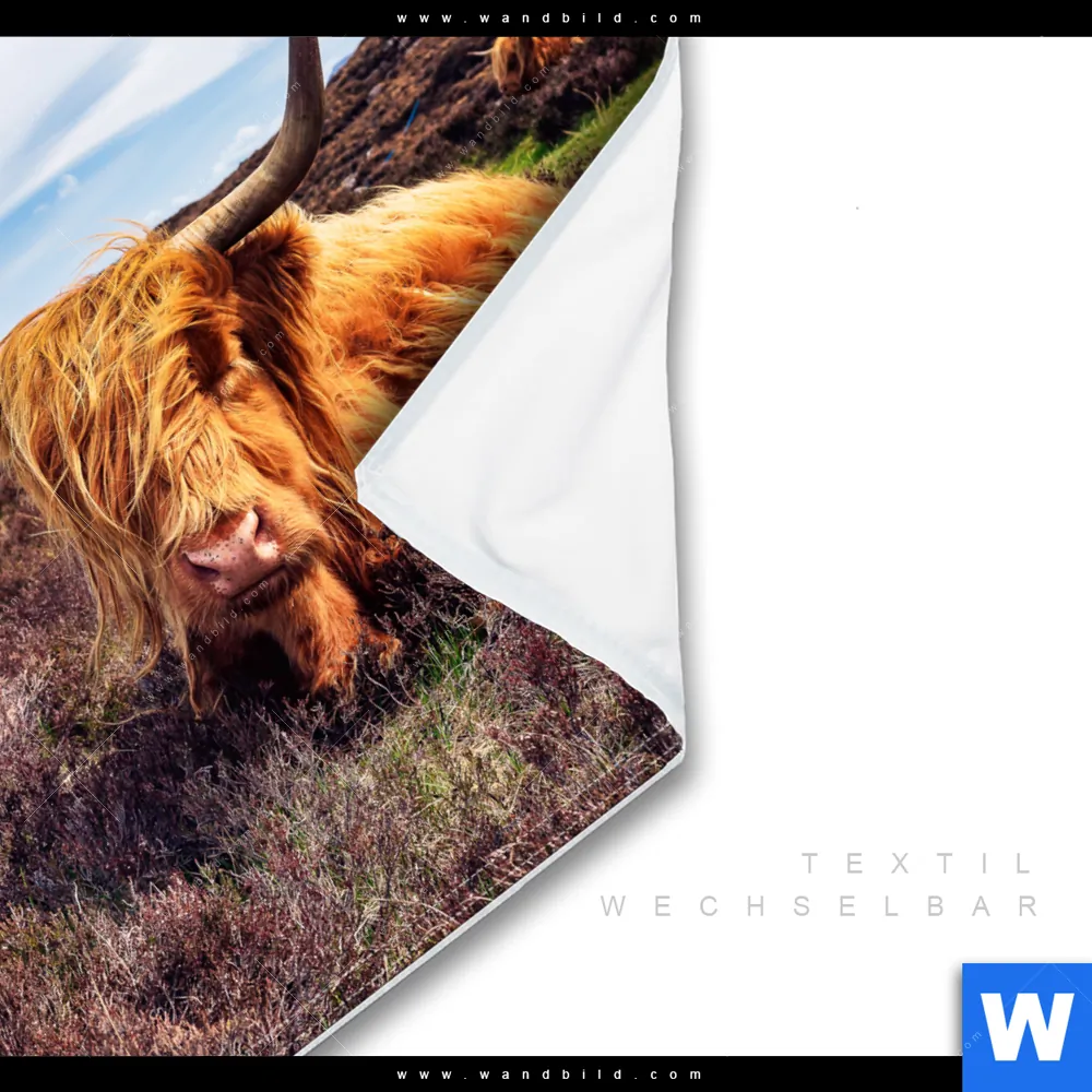 Wechselmotiv Textil | Grasendes Hochlandrind | Quadrat