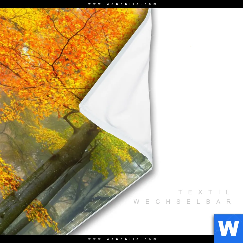 Wechselmotiv Textil | Herbstfarben im nebligen Wald | Hochformat