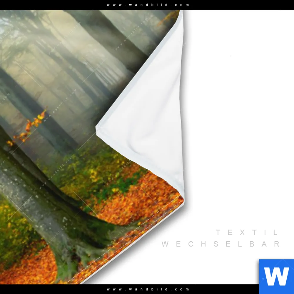 Wechselmotiv Textil | Herbstfarben im nebligen Wald | Panorama