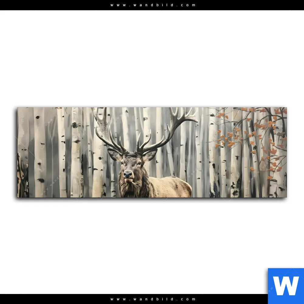 Wechselmotiv Textil | Hirsch im Birkenwald | Panorama