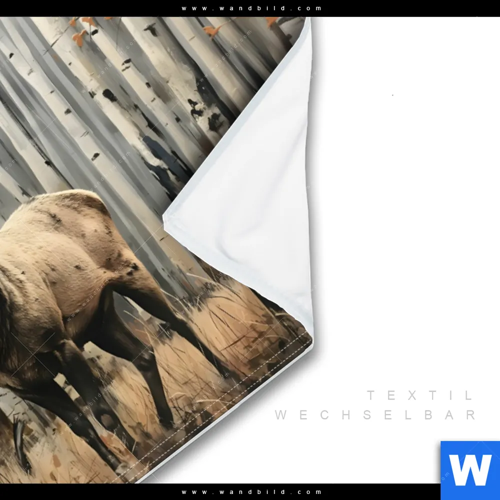 Wechselmotiv Textil | Hirsch im Birkenwald | Querformat