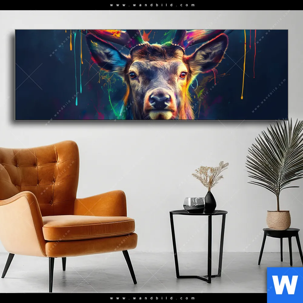 Wechselmotiv | Hirsch im leuchtenden Farbmix | Panorama
