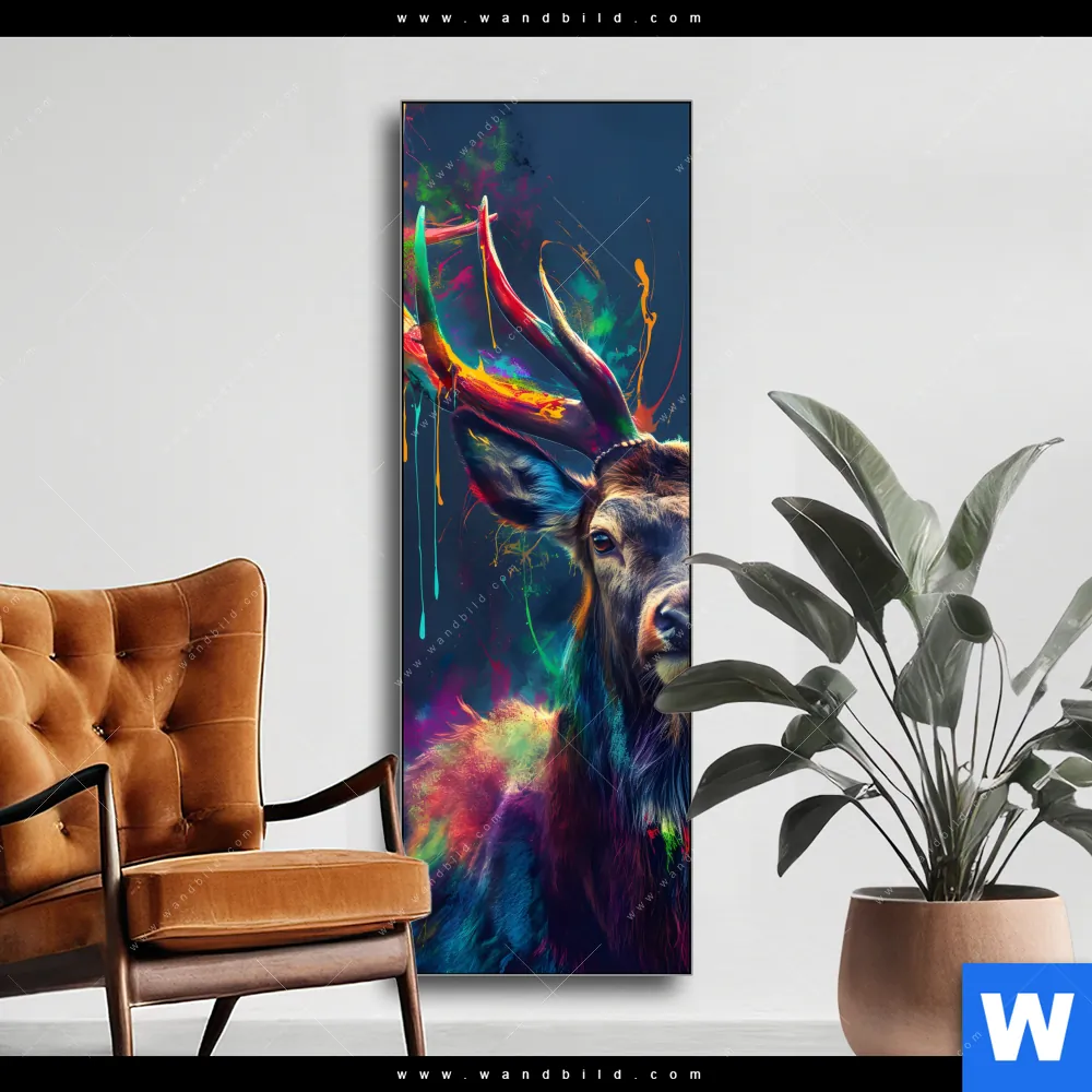 Wechselmotiv | Hirsch im leuchtenden Farbmix | Schmal