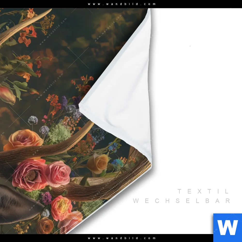 Wechselmotiv Textil | Hirsch mit floralem Geweih | Hochformat