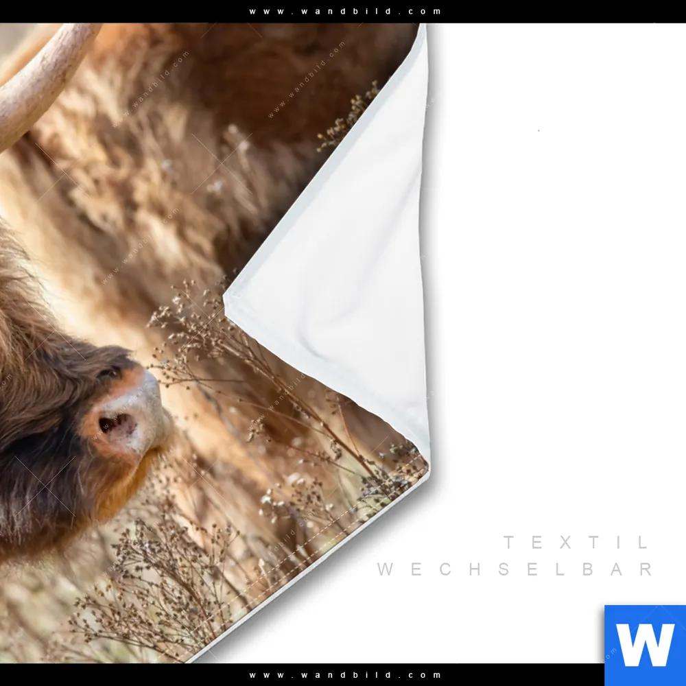 Wechselmotiv Textil | Hochlandrind auf Weide | Querformat