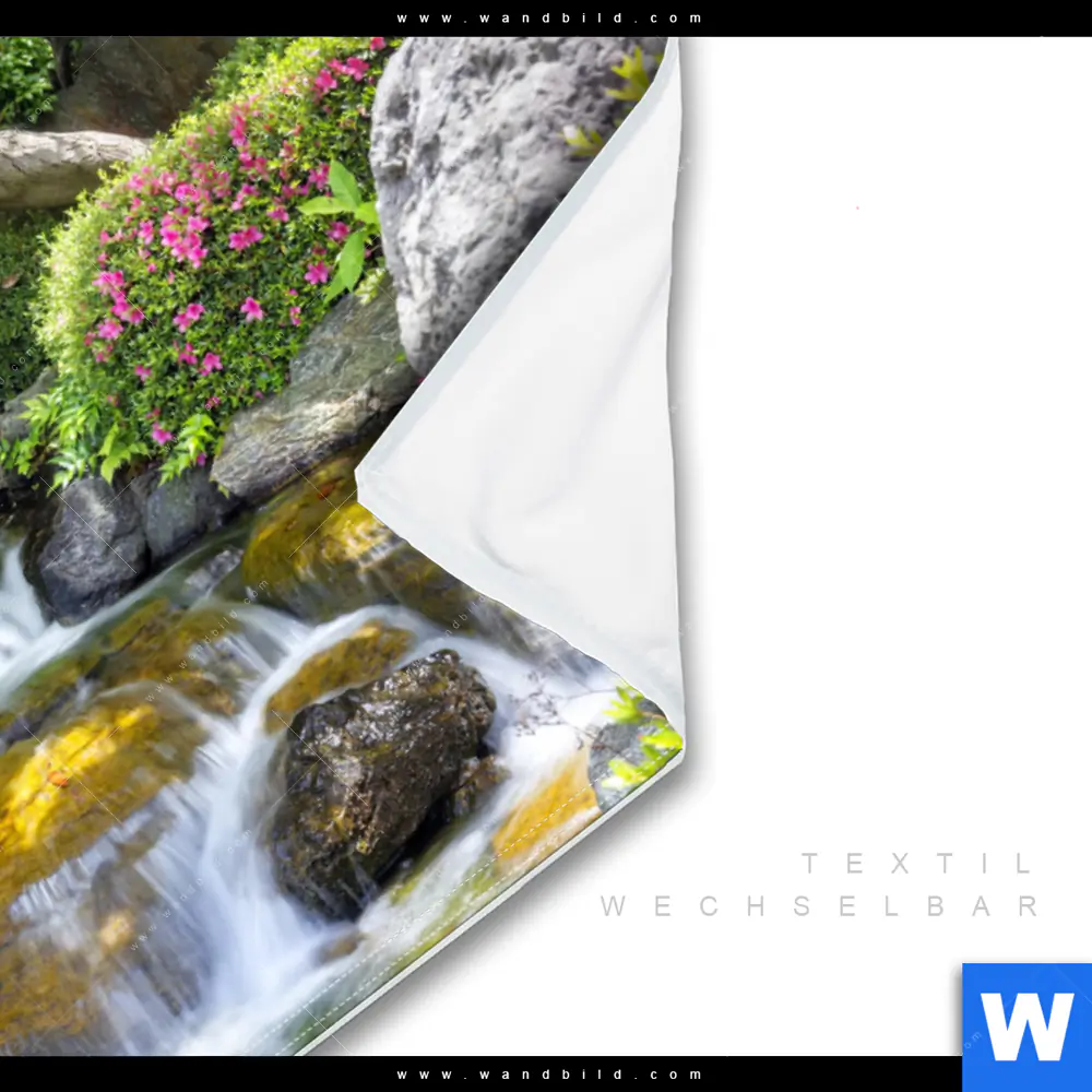 Wechselmotiv Textil | Japanischer Garten mit Wasserlauf | Querformat