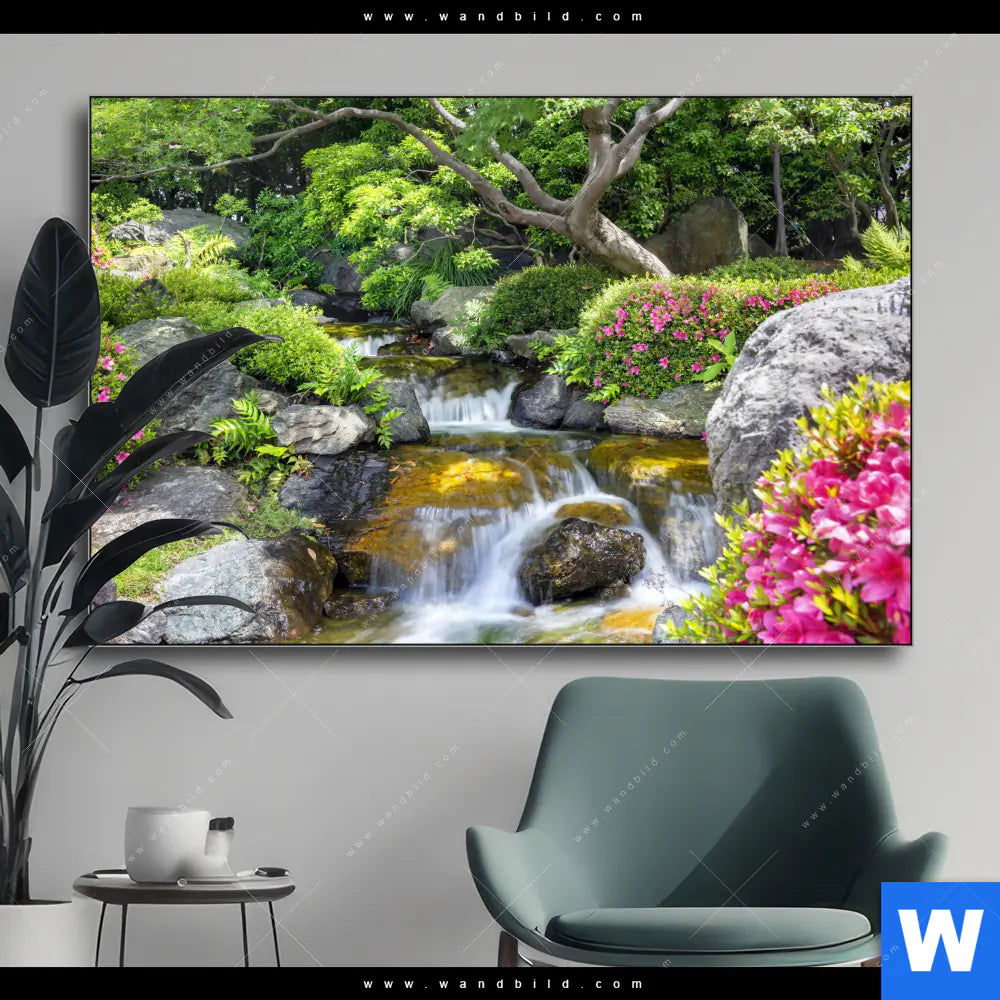 Wechselmotiv | Japanischer Garten mit Wasserlauf | Querformat