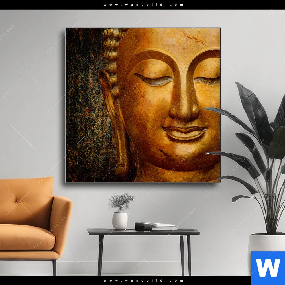 Wechselmotiv | Lächelnder Buddha in Gold | Quadrat