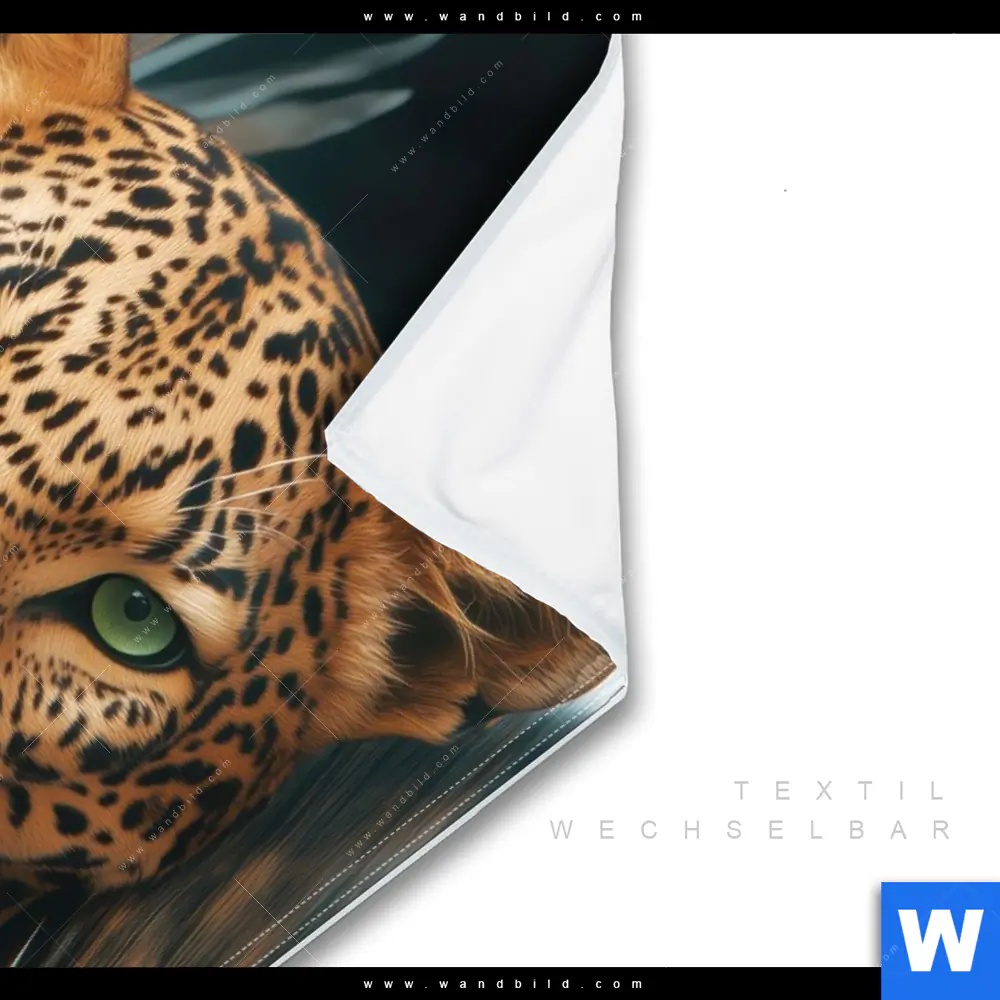 Wechselmotiv Textil | Leopard zwischen Blättern | Hochformat