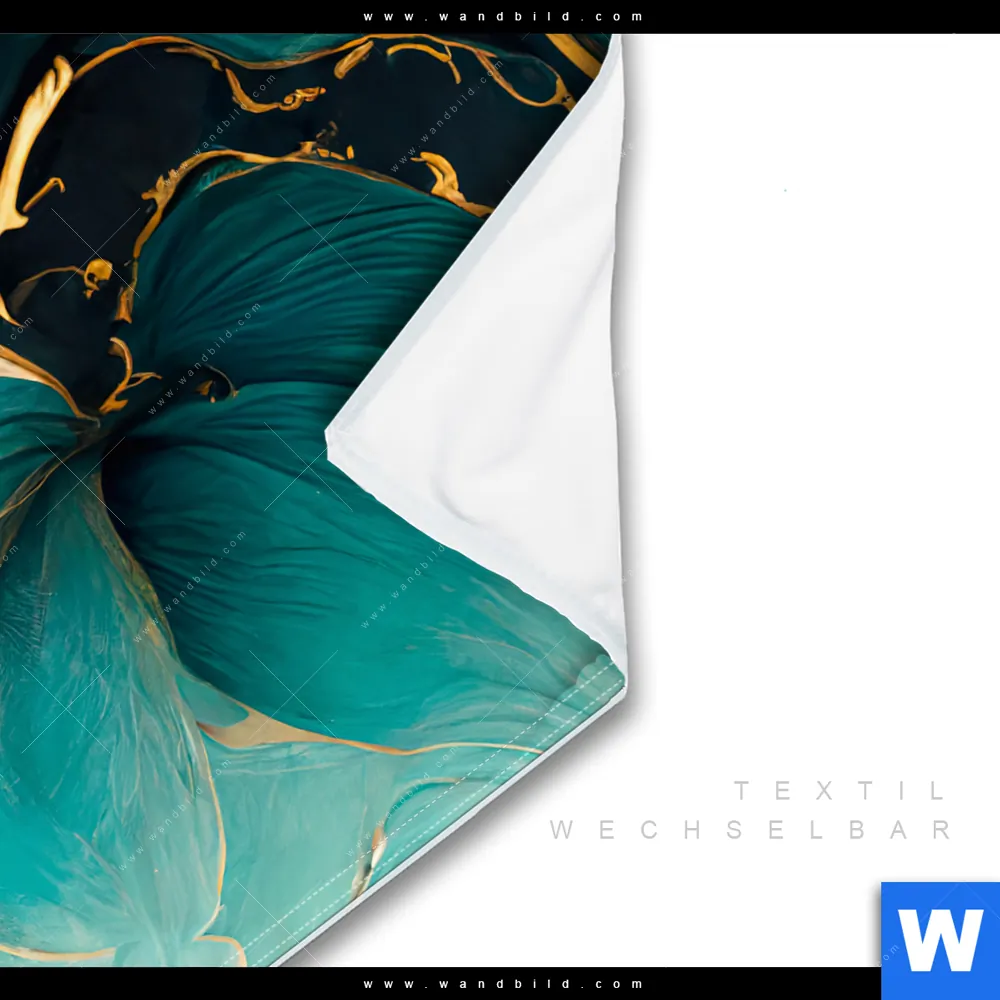 Wechselmotiv Textil | Marmor Blüten in türkis & gold | Quadrat