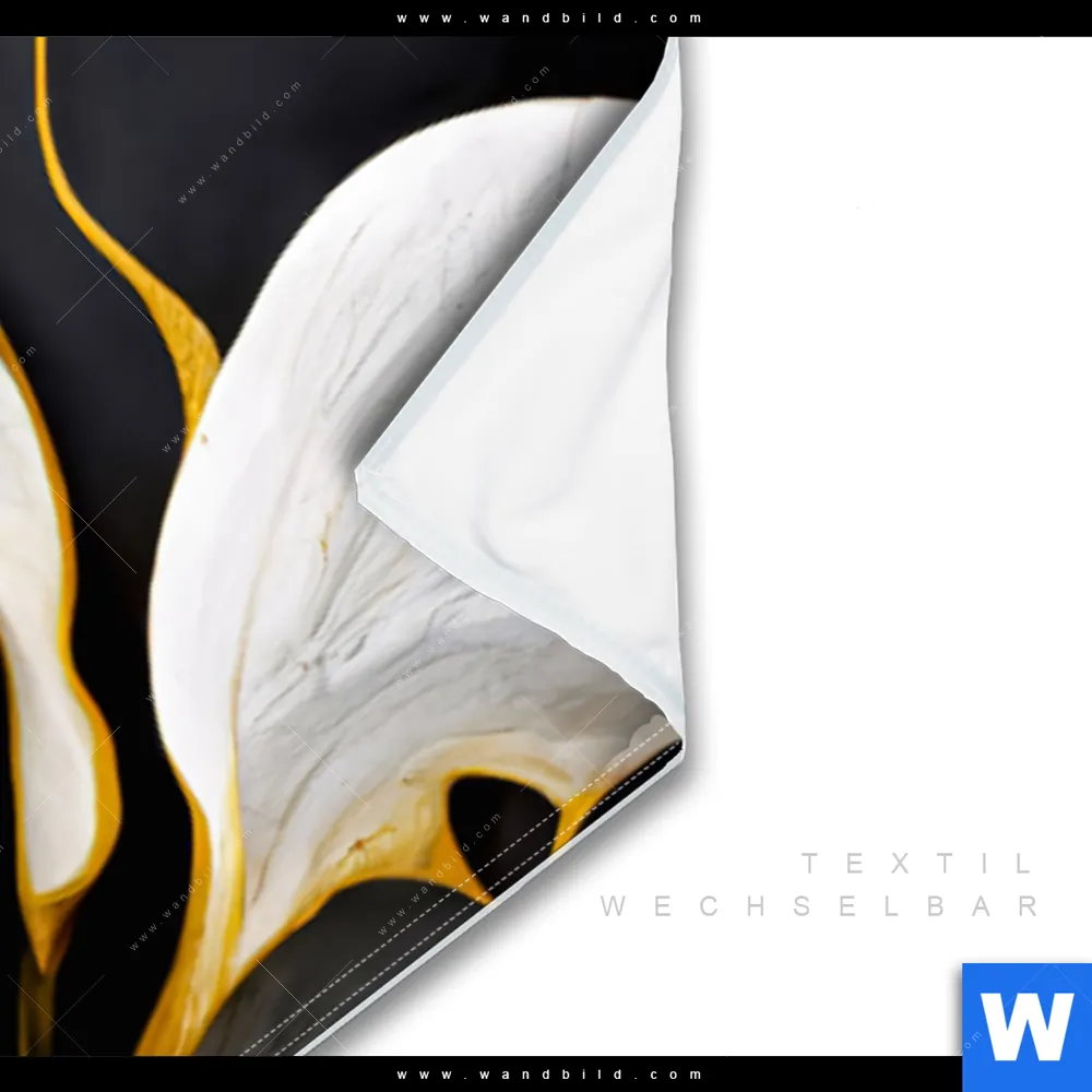 Wechselmotiv Textil | Marmor Blüten in weiß & gold | Panorama