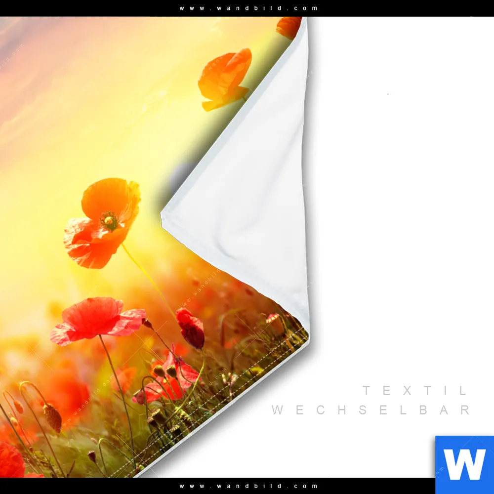 Wechselmotiv Textil | Mohnblumenfeld bei Sonnenuntergang | Quadrat