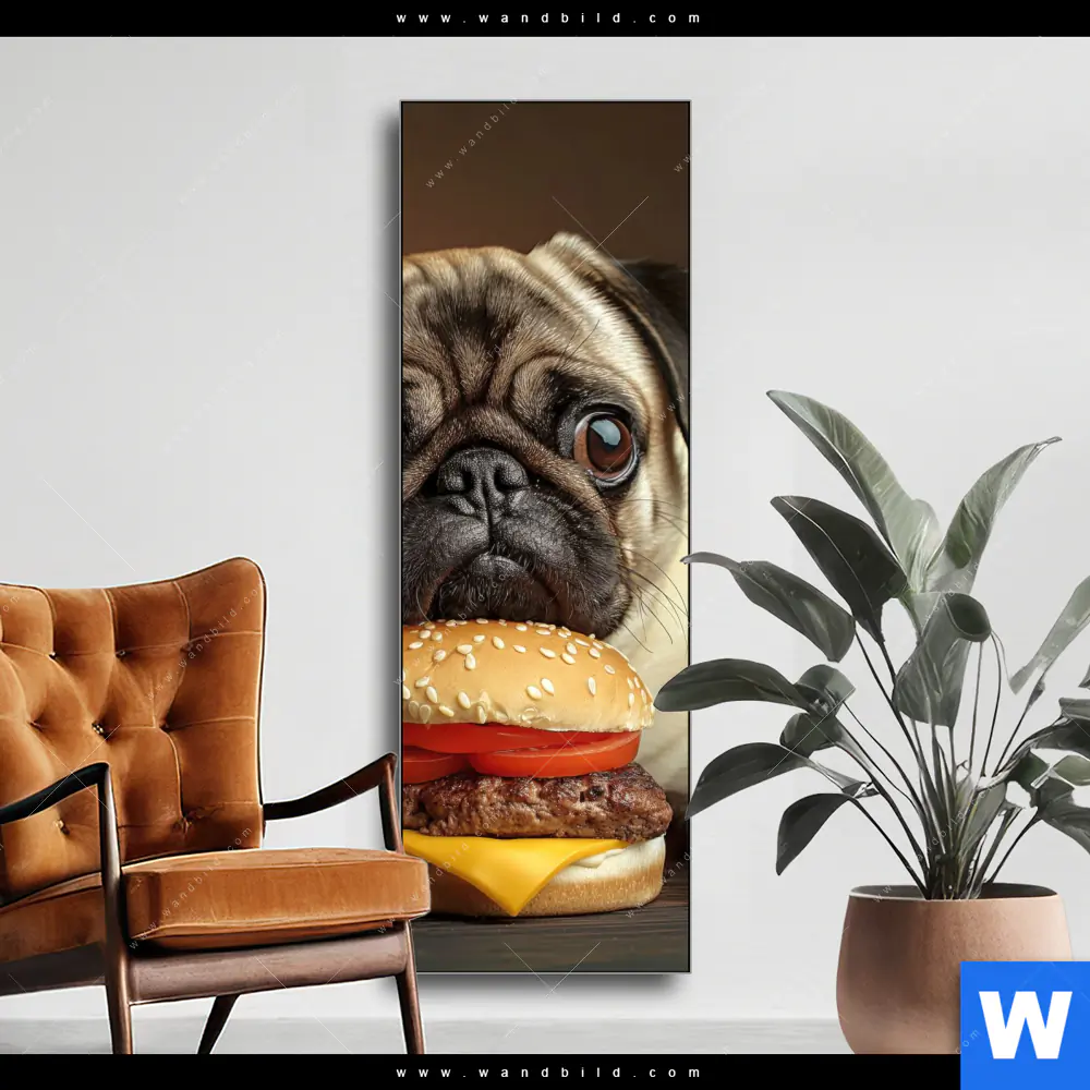 Wechselmotiv | Mops mit Cheeseburger | Schmal