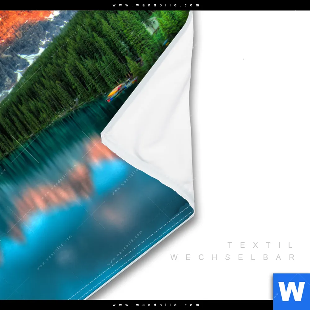 Wechselmotiv Textil | Moränensee Sonnenaufgang | Querformat