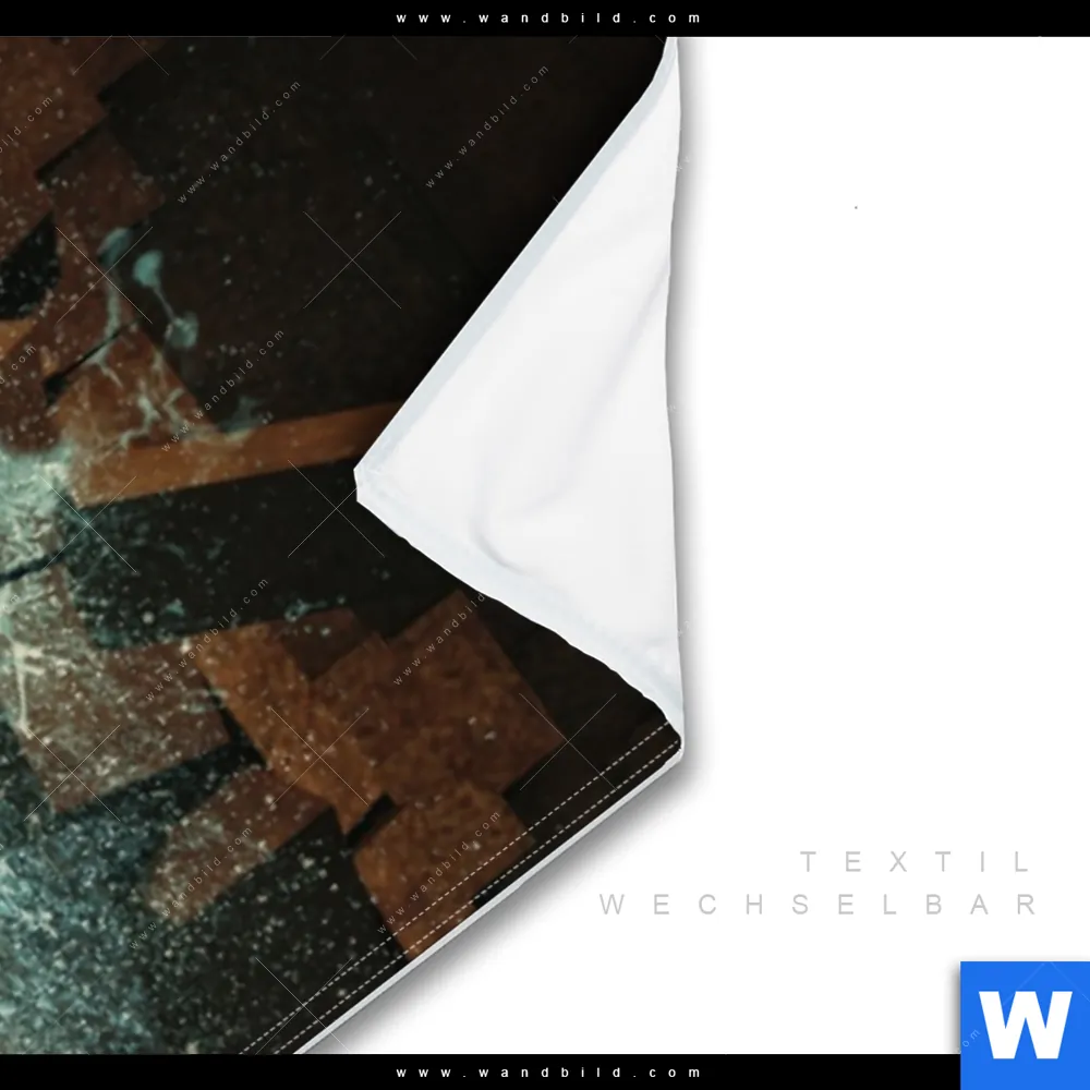 Wechselmotiv Textil | Nashorn zerstört Wand | Schmal