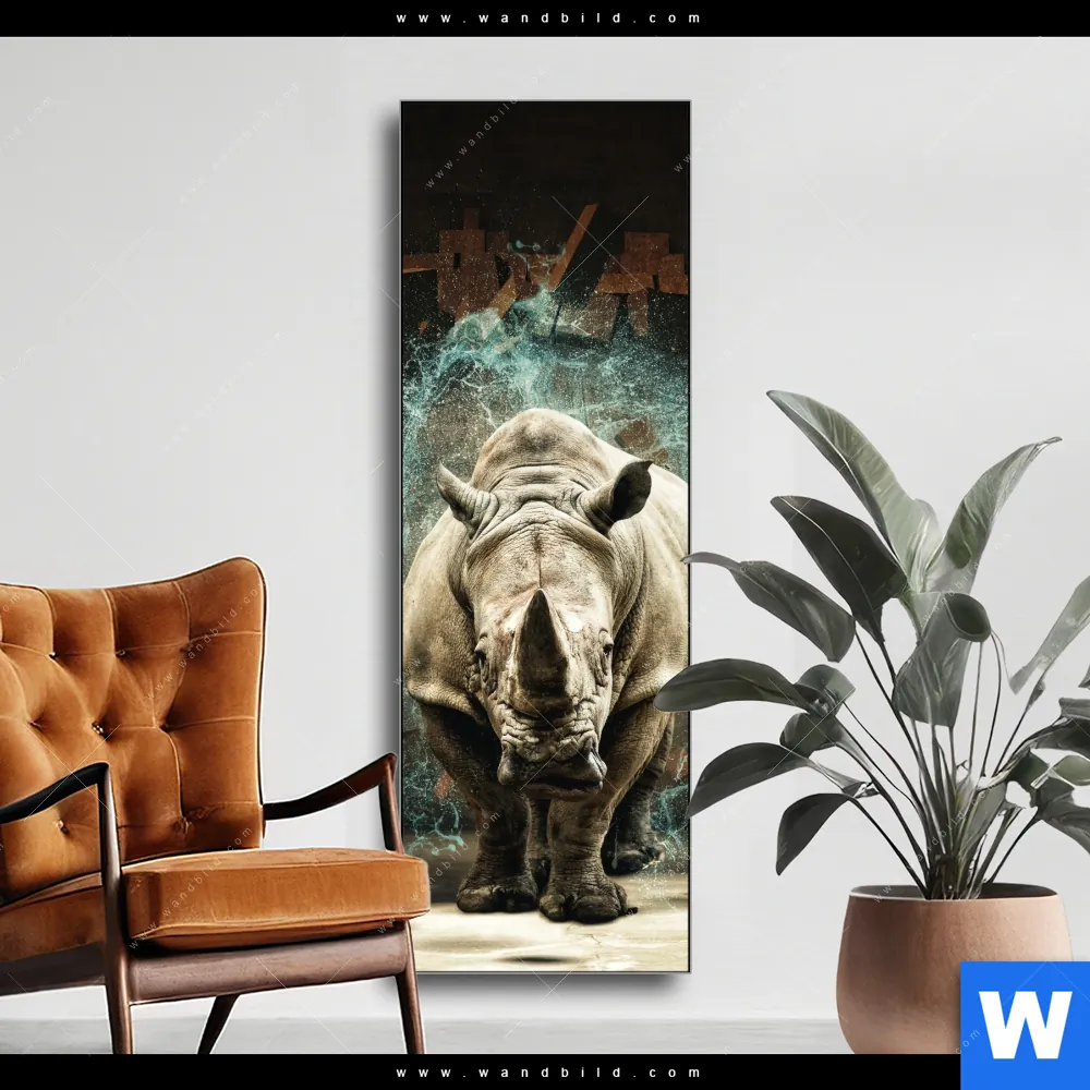 Wechselmotiv | Nashorn zerstört Wand | Schmal