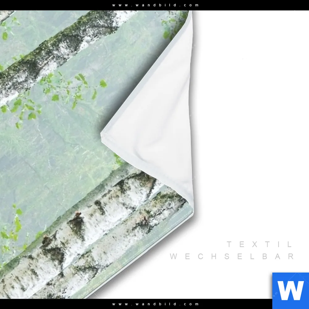 Wechselmotiv Textil | Nebliger Birkenwald | Hochformat