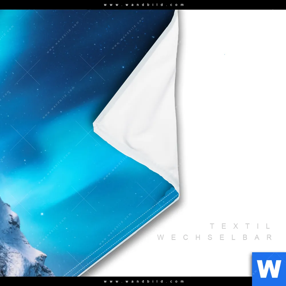 Wechselmotiv Textil | Nordlichter und schneebedeckte Berge | Hochformat