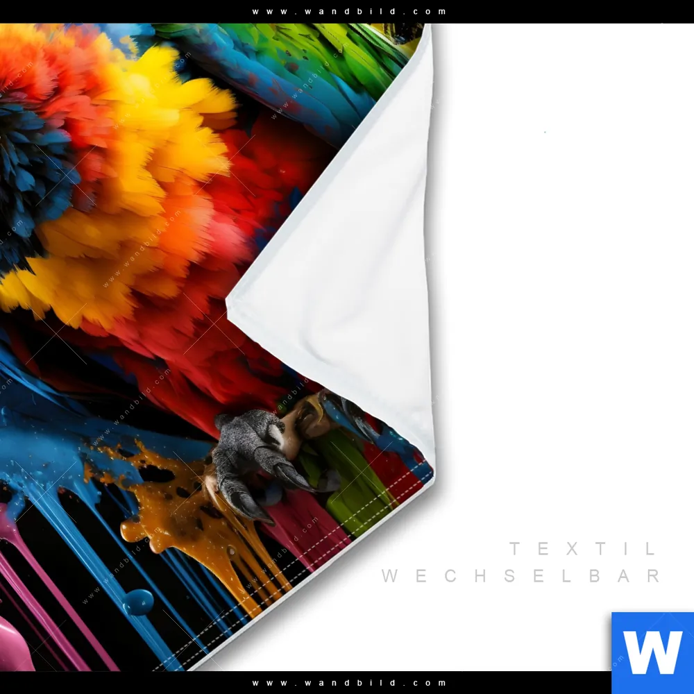 Wechselmotiv Textil | Papagei mit bunten Farbspritzern | Quadrat