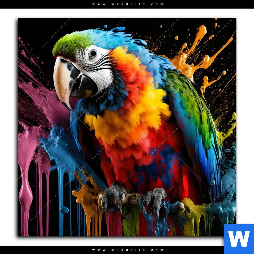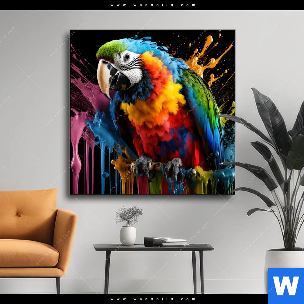 Wechselmotiv | Papagei mit bunten Farbspritzern | Quadrat