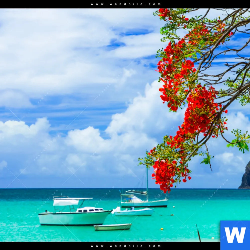 Wechselmotiv | Rote Blüten und Türkisfarbenes Meer | Quadrat