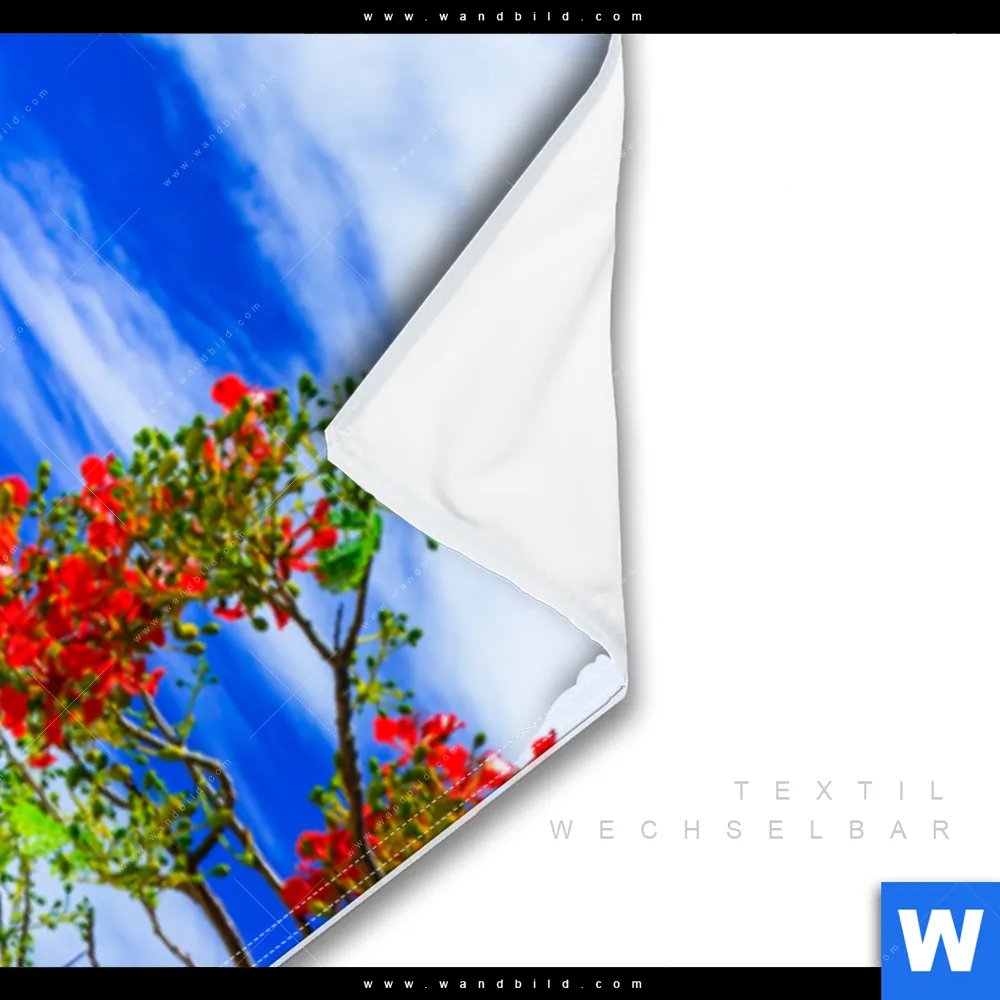 Wechselmotiv Textil | Rote Blüten und Türkisfarbenes Meer | Schmal