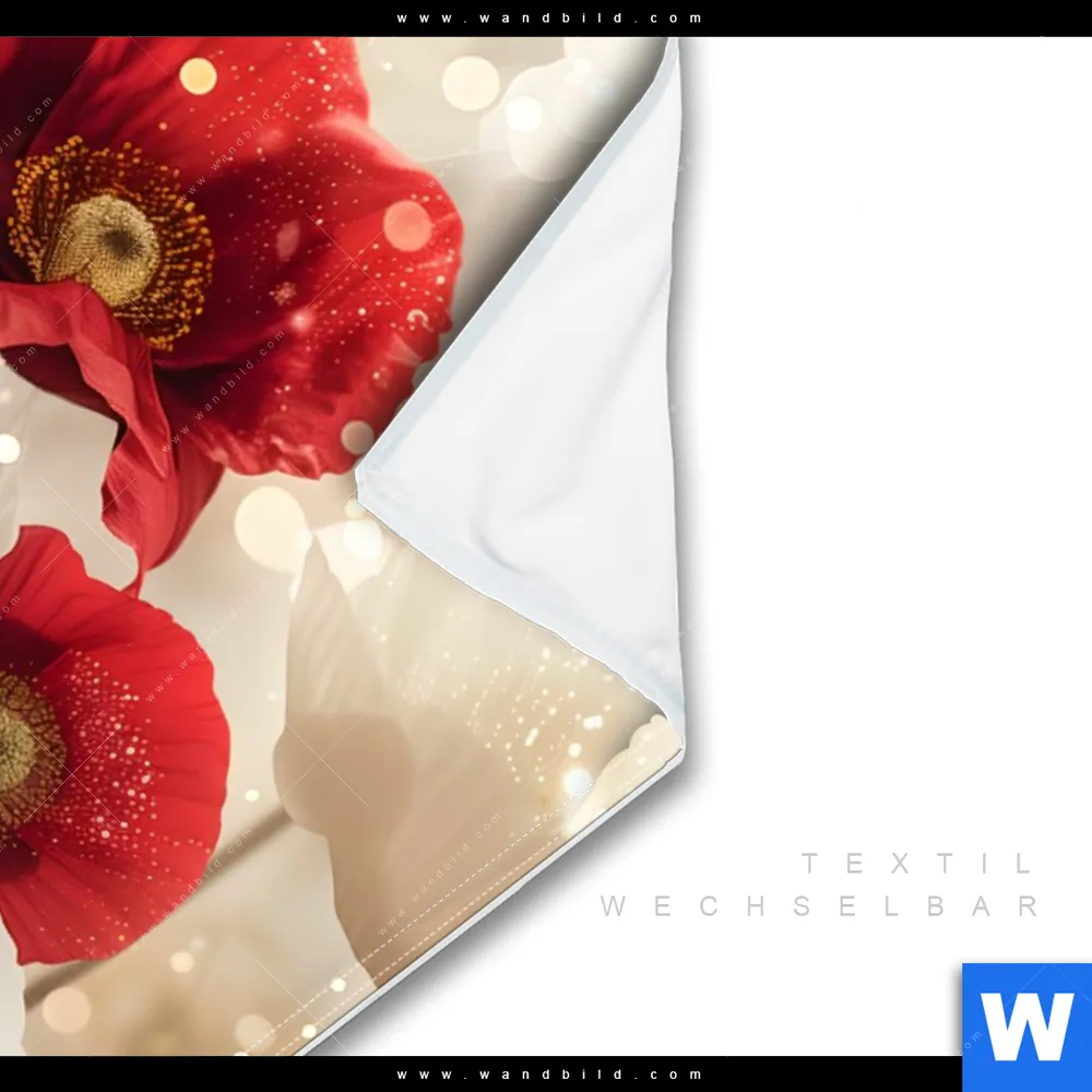 Wechselmotiv Textil | Rote und weiße Mohnblumen | Hochformat