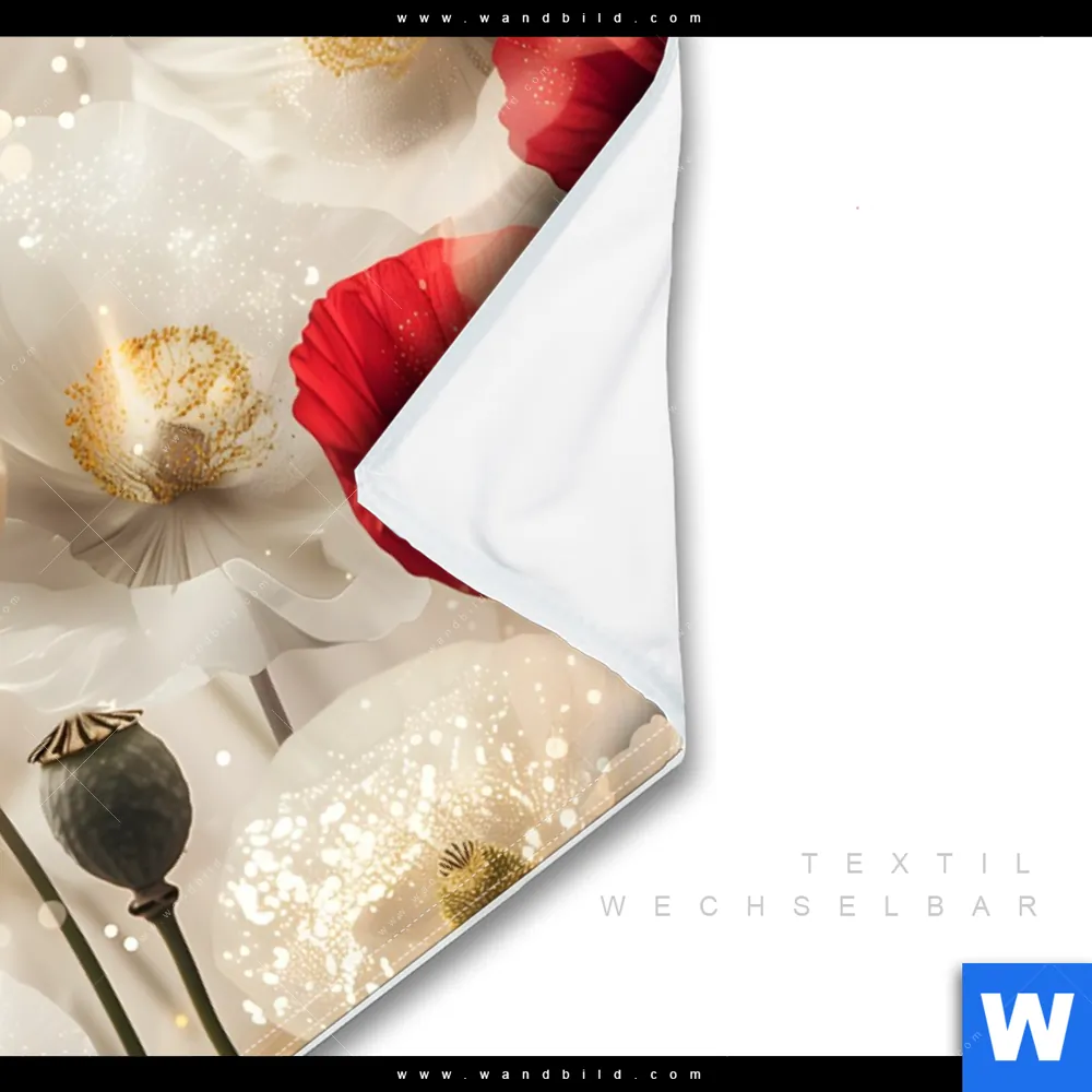 Wechselmotiv Textil | Rote und weiße Mohnblumen | Querformat