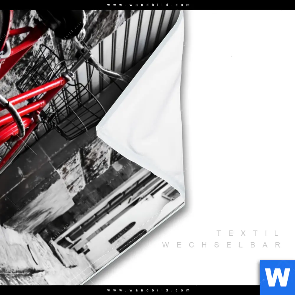 Wechselmotiv Textil | Rotes Fahrrad in Gasse | Hochformat