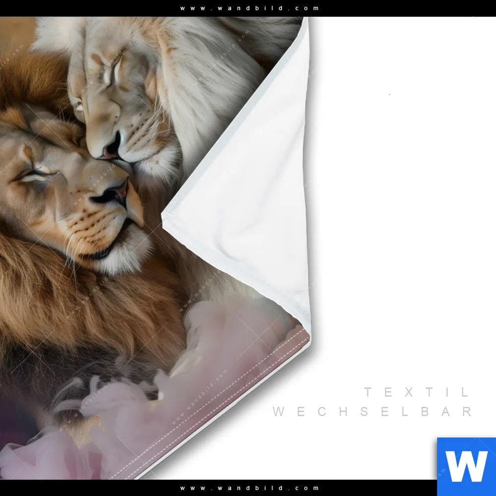 Wechselmotiv Textil | Sanfte Löwenmomente in buntem Nebel | Quadrat