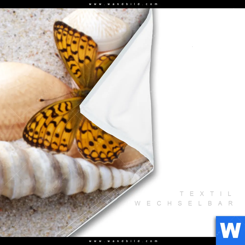 Wechselmotiv Textil | Schmetterlinge & Muscheln im Sand | Panorama
