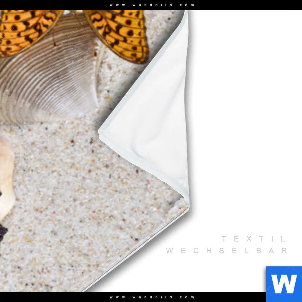 Wechselmotiv Textil | Schmetterlinge & Muscheln im Sand | Schmal