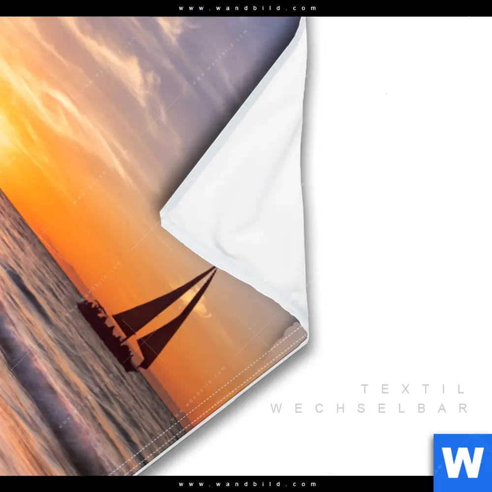 Wechselmotiv Textil | Segelboot im Sonnenuntergang | Hochformat