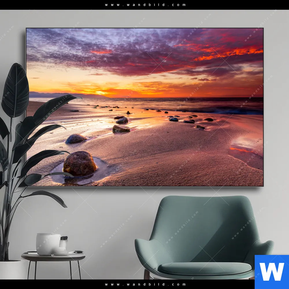 Wechselmotiv | Sonnenuntergang am Strand mit Felsen | Querformat