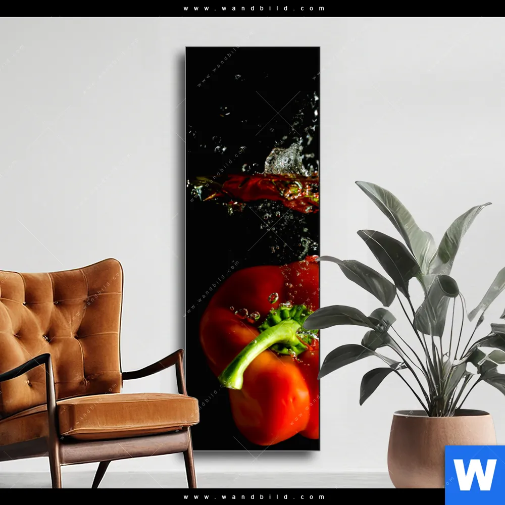 Wechselmotiv Textil | Spritzer von Paprika beim fallen ins Wasser | Schmal