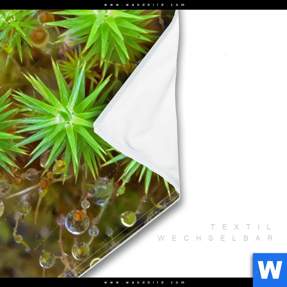 Wechselmotiv Textil | Tautropfen auf Moos | Quadrat