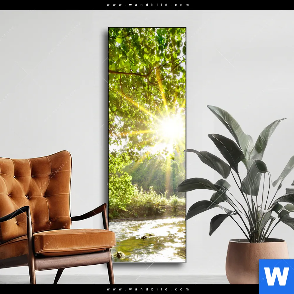 Wechselmotiv | Wald mit Bach bei Sonnenschein | Schmal
