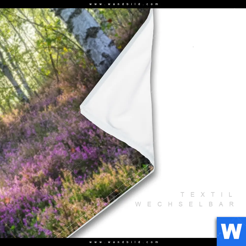 Wechselmotiv Textil | Wald mit Heideblumen | Panorama