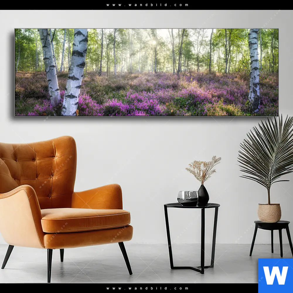 Wechselmotiv | Wald mit Heideblumen | Panorama