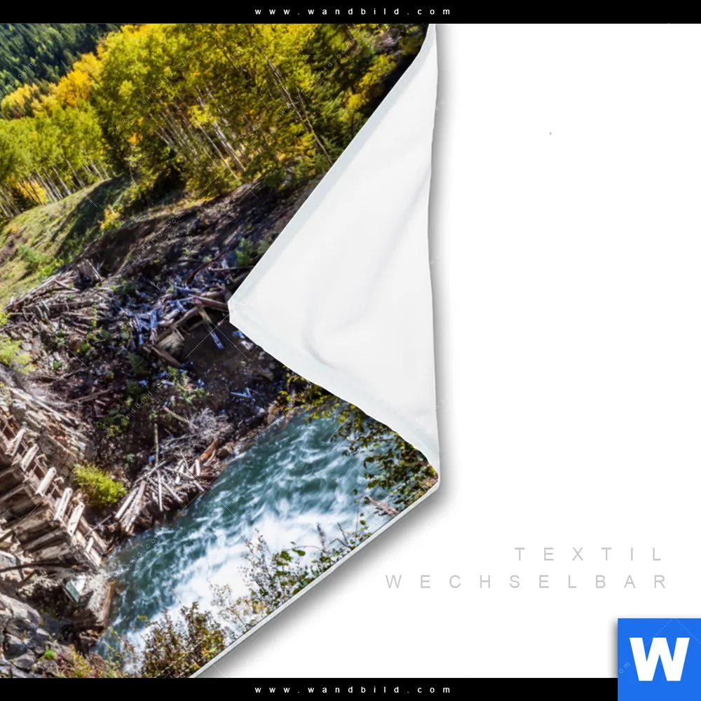 Wechselmotiv Textil | Waldhütte am Fluss | Querformat