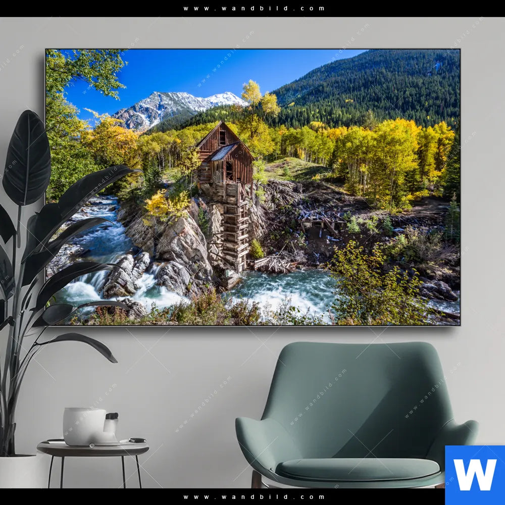 Wechselmotiv | Waldhütte am Fluss | Querformat