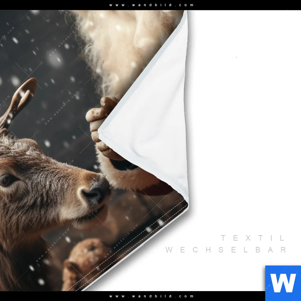 Wechselmotiv Textil | Weihnachtsmann füttert Rentier | Quadrat