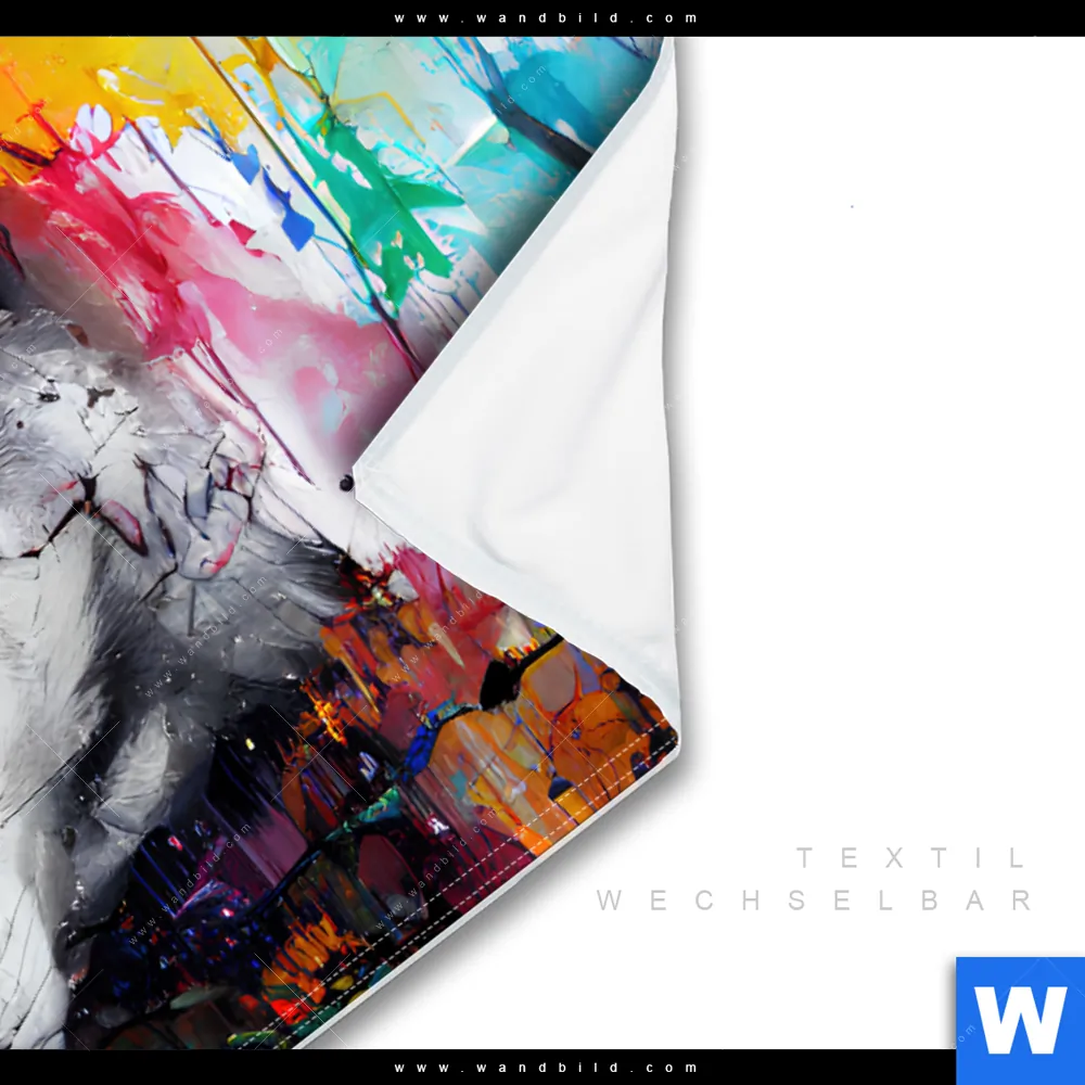 Wechselmotiv Textil | Wolf mit bunten Farbspritzern | Querformat
