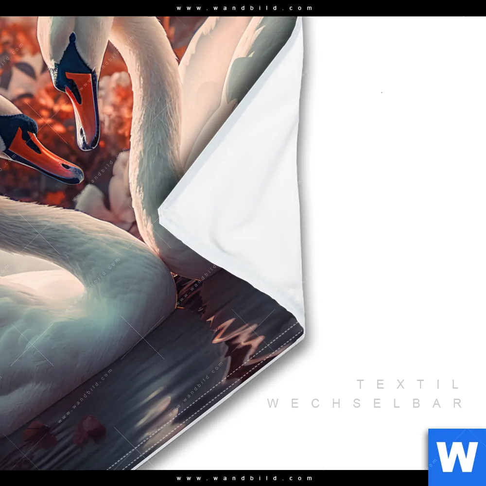 Wechselmotiv Textil | Zwei Schwäne im Wasser | Quadrat