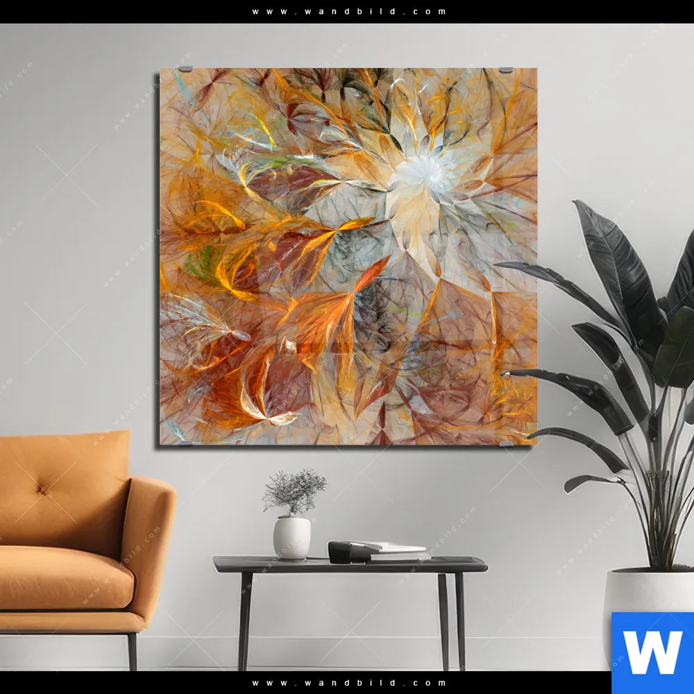 Acrylglasbild | Abstrakter Blütenzauber in orange | Quadrat